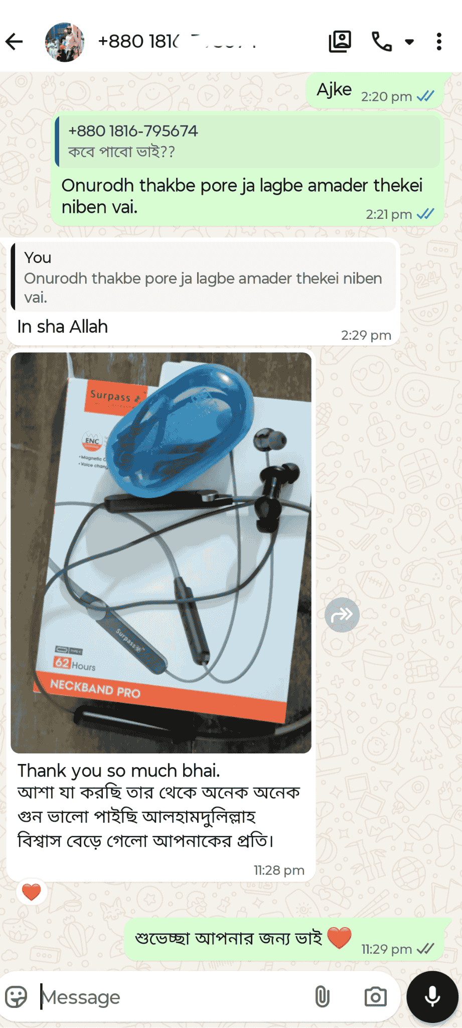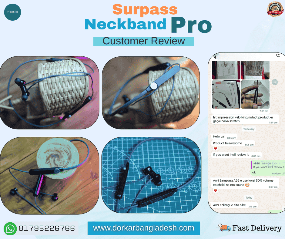 আমাদের কাছ থেকে এই নেকব্যান্ড টি ক্রয় করলে আপনি পাচ্ছেন ৩ মাসের Anytime Replacement Guaranty✔️যেকোন প্রকার এর সমস্যায় আপনি আমাদের জানাবেন আমরা ২৪ ঘন্টার ভিতরে আপনার জন্য নতুন আর একটি ইউনিট পাঠিয়ে দিব কুরিয়ারে। আপনি নতুন ইউনিট টি রিসিভ করবেন আর আপনার কাছে থাকা সমস্যা হওয়া ইউনিট টা ডেলিভারি ম্যান কে দিয়ে দিবেন।